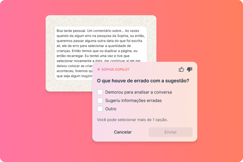 - Fase 50% (Data Driven): Implementamos componentes de feedback (Like/Dislike) direto na UI. Se o usuário negativasse, ele podia categorizar o erro (Demorou? Errou?). Isso gerou dados para refinarmos o modelo antes do scale-up.